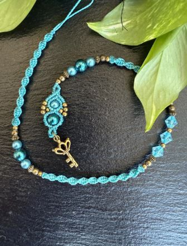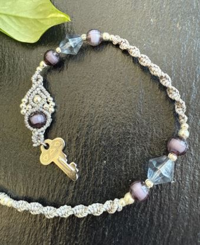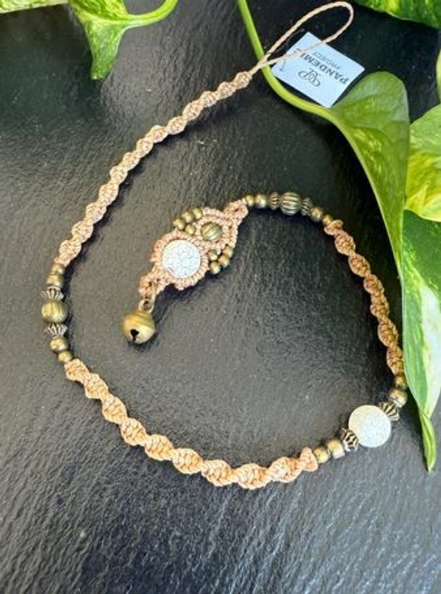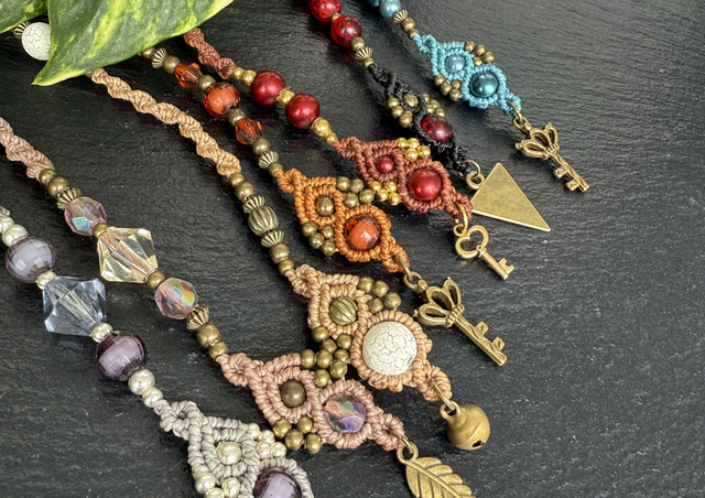 Makramee Dreadwrap mit Perlen und filigranen Details.