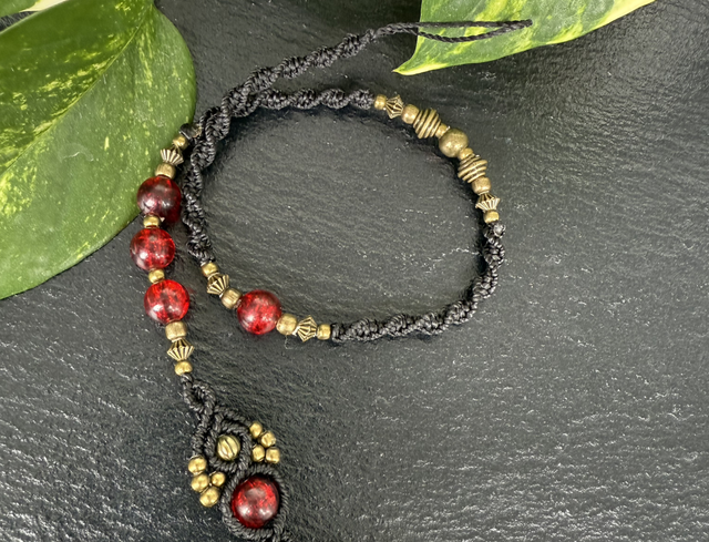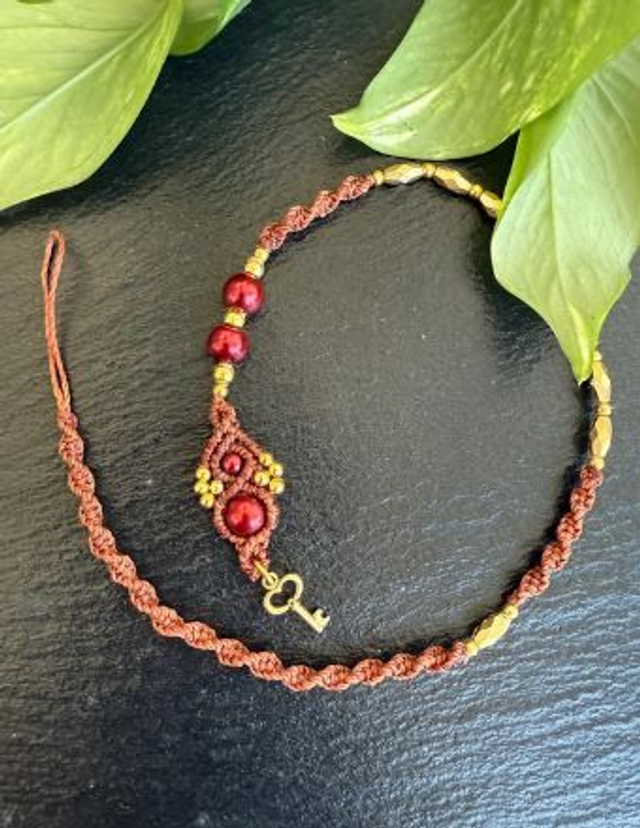 Braun mit roten Perlen - 38 cm