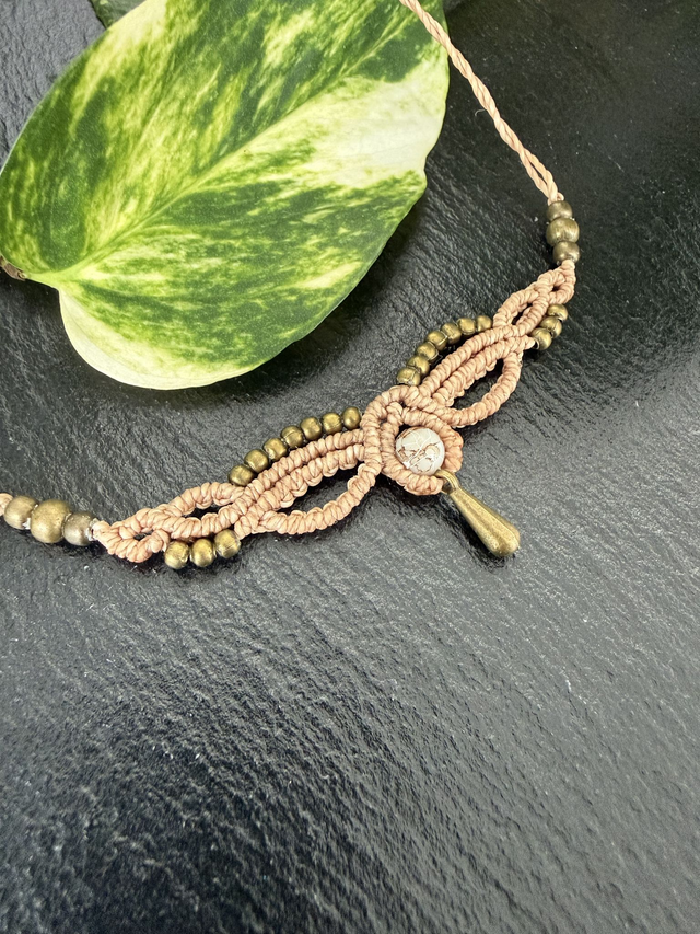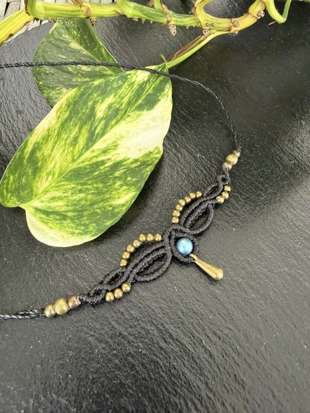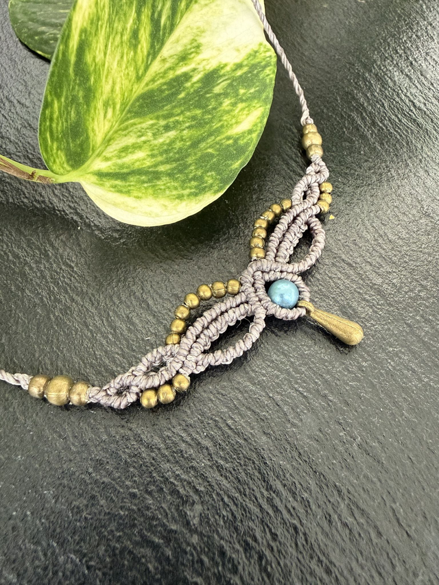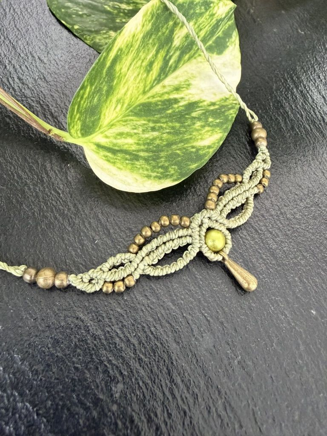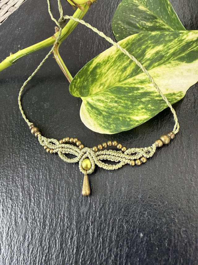 Süßer kleiner Choker aus Linhasitha-Garn. Verziert mit Messing-Perlen, passender Zierperle und tropfenförmigem Anhänger. Vielseitig kombinierbar und auch als Tiara oder Stirnschmuck tragbar. Wähle deine Lieblingsfarbe ☺️